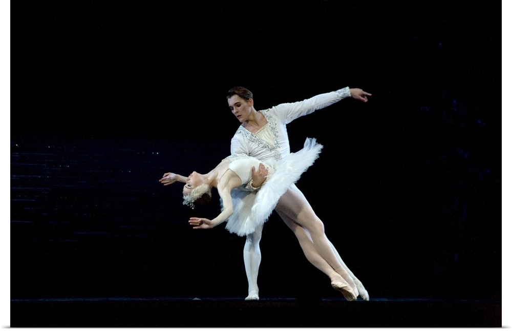 <p>Russia, St.Petersburg, Prince Sigfried dancing with the Swan in the performance of Tchaikovsky's 'Swan Lake'.</p>