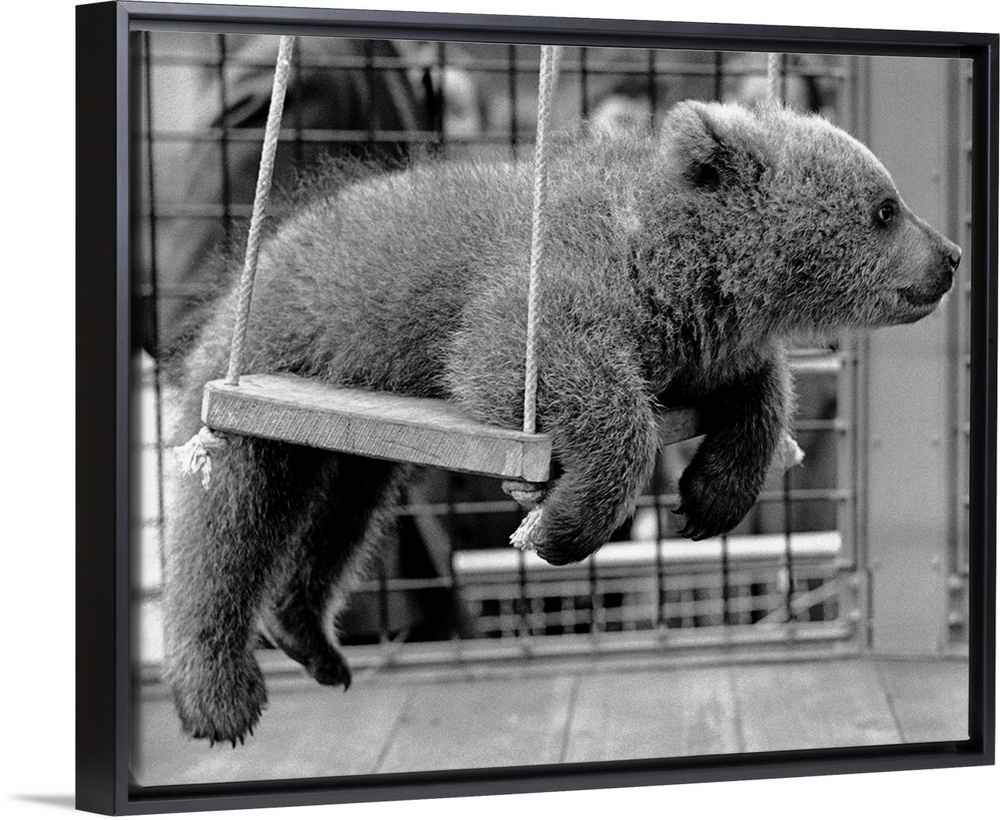 <p>Nikki, the Russian bear cub belonging to Princess Anne, loves to ride on the swing in his cage at the London Zoo.</p>