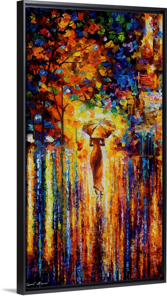 <p>Leonid Afremov was an extraordinarily prolific contemporary artist with a style all his own. His palette knife paintings depict people, cities, seascapes, gardens and animals in bold colors. Afremov’s love for brilliant colors may be cathartic, an affirmation that he had risen above the struggles and drudgery that plagued him early in his career in Russia and Israel. Afremov’s intricate and timeless paintings make spectacular canvas prints that will add a touch of sophistication and charm to any room.</p>
