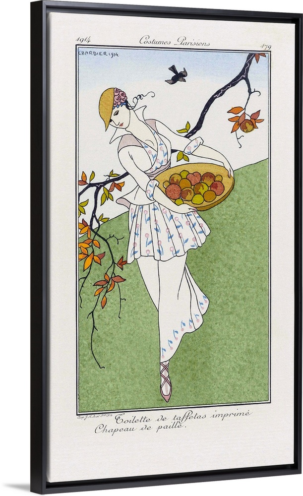 <p>Toilette de taffetas imprime, Chapeau de paille - Printed Taffeta Toilet ,Straw Hat. Print from the high fashion magazine Journal des Dames et des Modes, published from June 1, 1912 to August 1, 1914. After a work by French illustrator George Barbier, 1882 - 1932.</p>