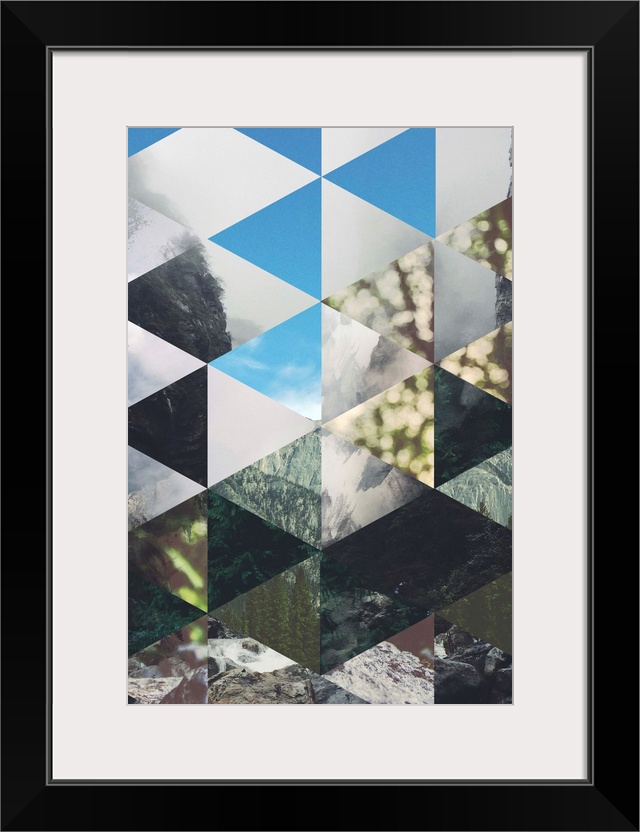 <p>Geometric triangular shapes against a background of different forest images.</p>