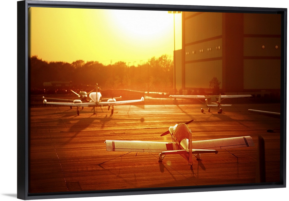 <p>Private airplanes at Airport at sunset.</p>