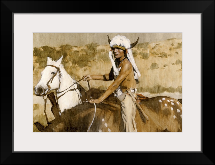 <p>Contemporary western theme painting of a native american on horseback.</p>