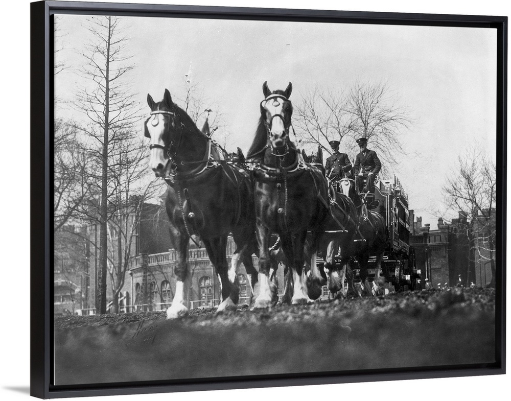 <p>The Anheuser-Busch team on the streets of St. Louis, Missouri, following the repeal of the 18th (Prohibition) Amendment, Dec. 1933.</p>