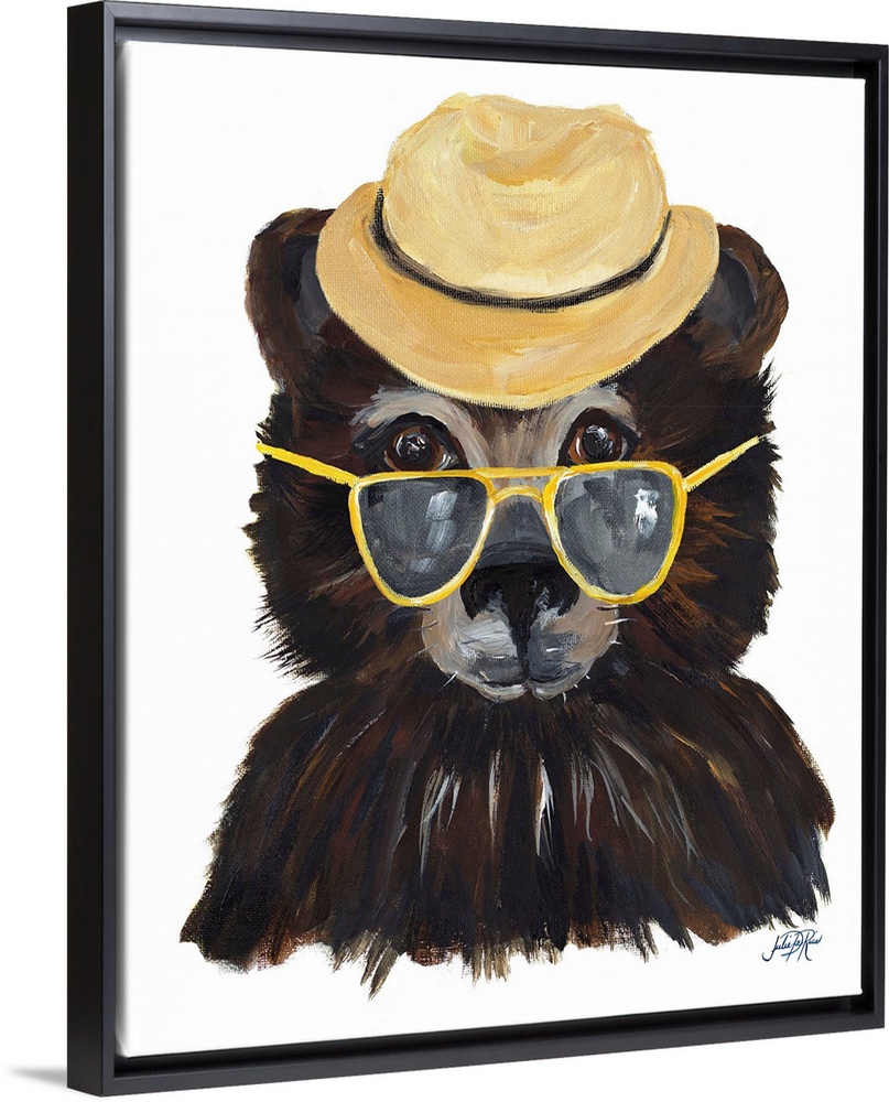 <p>Contemporary painting of a bear wearing a fedora and yellow sunglasses.</p>