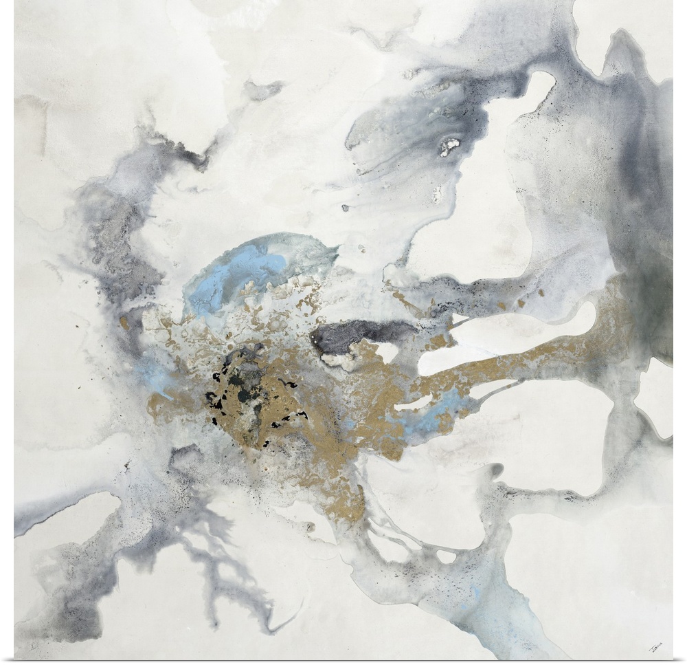 <p>Abstract contemporary painting in blue and gold tones, resembling a cloudy sky.</p>