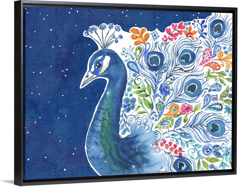 Art Blue Wall Art Contemporary Art Decorative Art Painting Watercolor Wildlife Bird Peacock