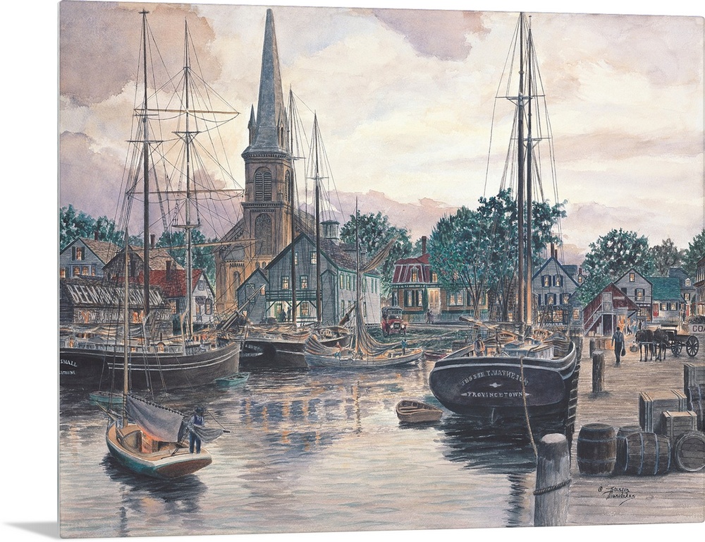 Art Cityscapes Contemporary Art Rivers, Lakes, and Oceans Harbor Stanton Manolakas Painting Massachusetts Transportation Boat Ship