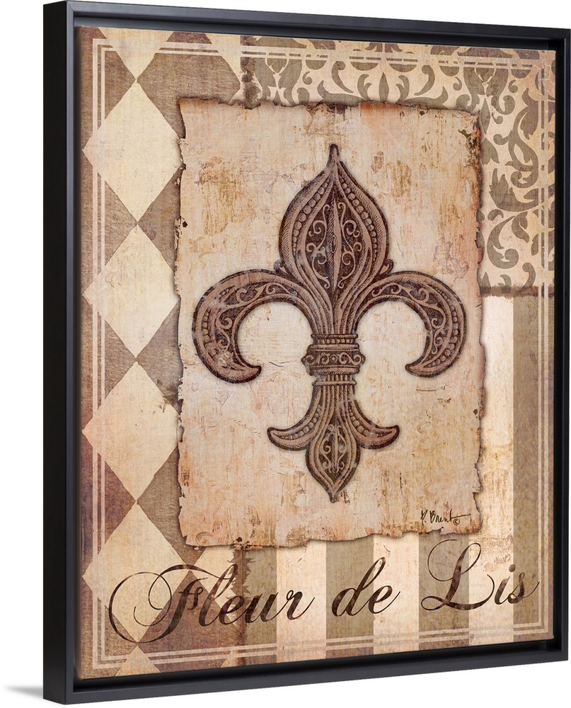 <p>Decorative sepia-toned artwork of a fleur de lis with vintage patterns.</p>