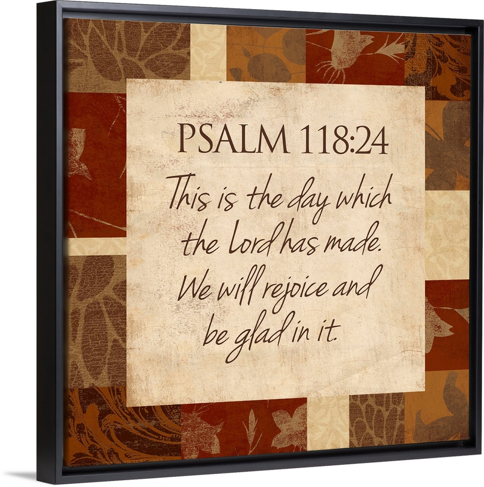 <p>Typographical scripture art with a border make up of different patterns and foliage.</p>
