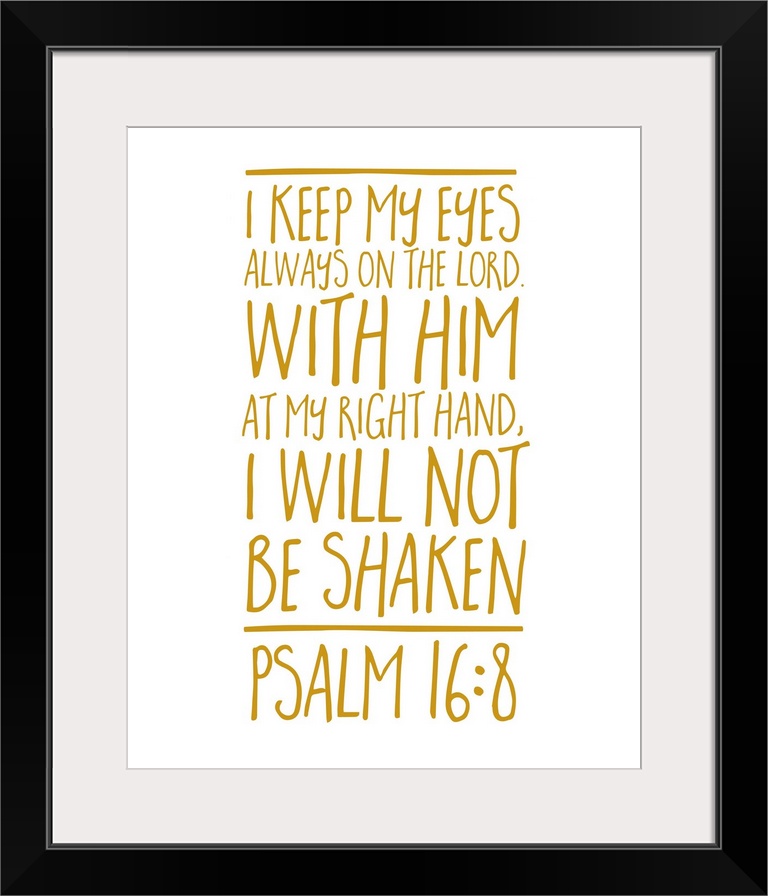 <p>Handlettered Bible verse reading I keep my eyes always on the Lord. With Him at my right hand, I will not be shaken.</p>