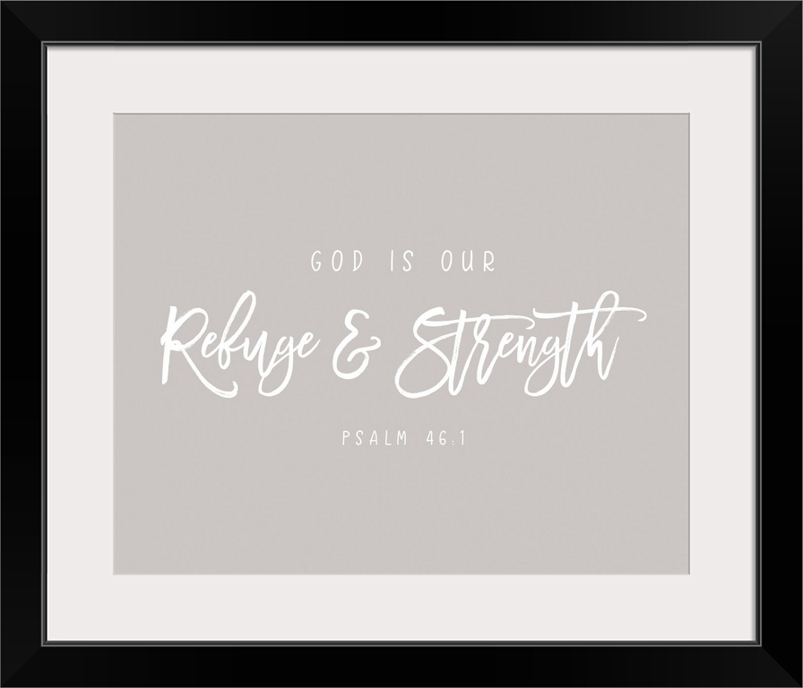<p>Handlettered Bible verse reading God is our refuge and strength.</p>