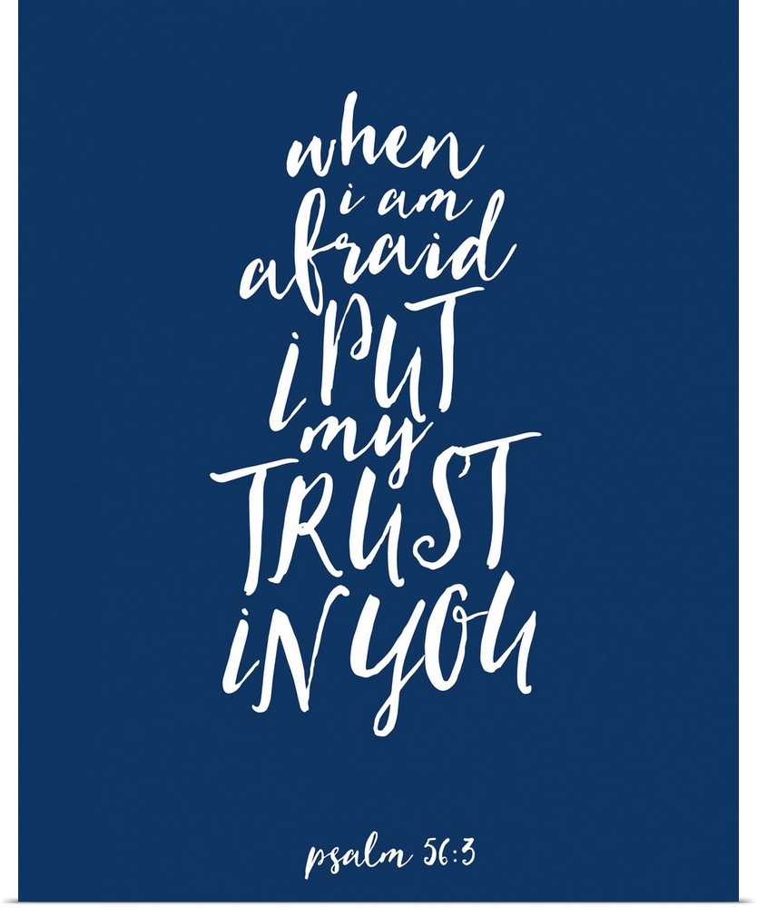 <p>Handlettered Bible verse reading When I am afraid I put my trust in You.</p>