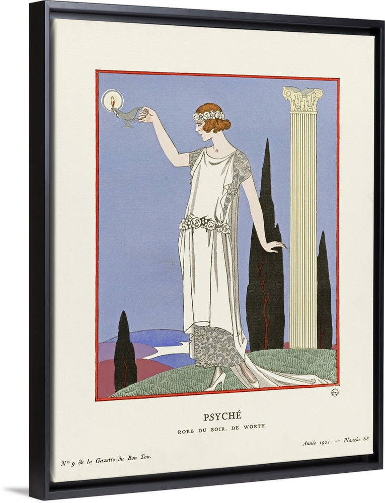 <p>Psyche. Psyche. Robe du Soir de Worth. Evening dress by Worth. Art-deco fashion illustration by French artist George Barbier, 1882-1932. The work was created for the Gazette du Bon Ton, a Parisian fashion magazine published between 1912-1915 and 1919-1925.</p>