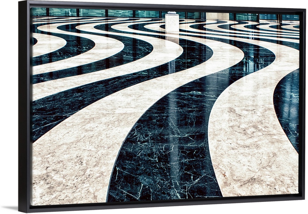<p>Fine art photo of a polished floor in a wavy black and white pattern.</p>