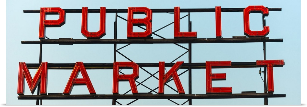 <p>Panoramic photograph of the Public Market sign at Pike Place Market in San Francisco.</p>
