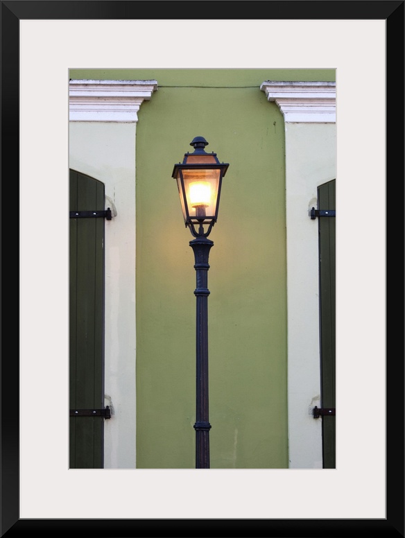 <p>Puerto Rico, West Coast, San German, Plaza Francisco Mariano Quinones, streetlight and colonial building</p>