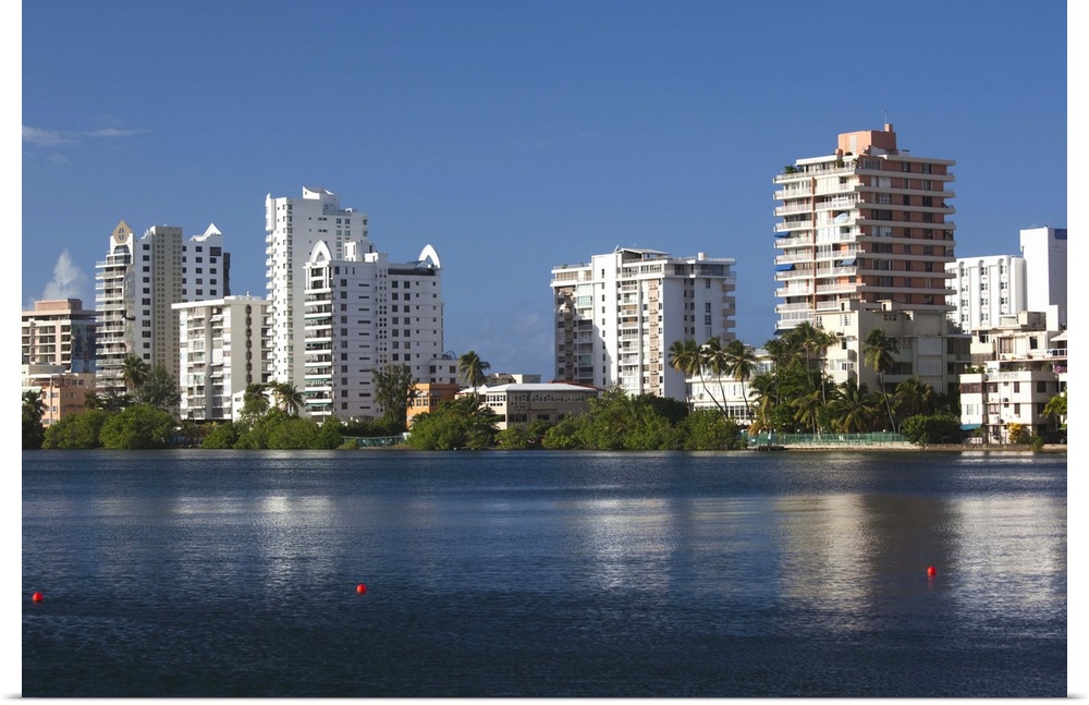<p>Puerto Rico, San Juan, Condado buildings from the Laguna Del Condado</p>