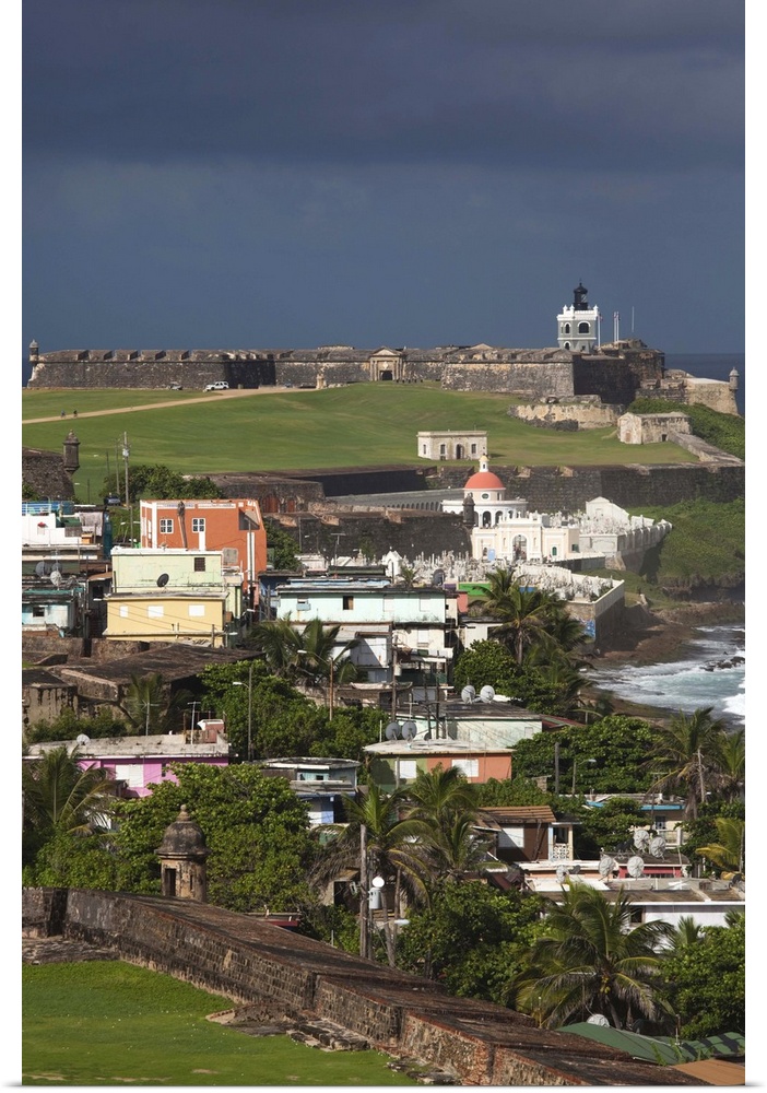<p>Puerto Rico, San Juan, Old San Juan, El Morro Fortress and La Perla village from Fort San Cristobal, elevated view</p>