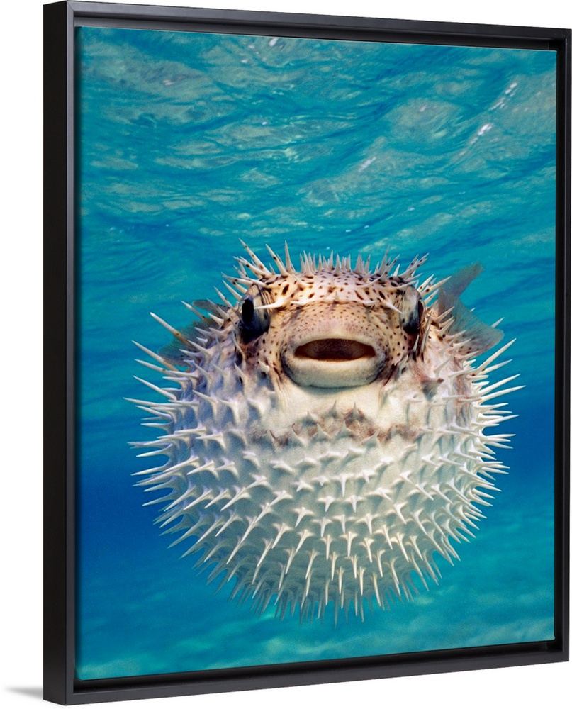 <p>Up close photograph of blow fish underwater.</p>