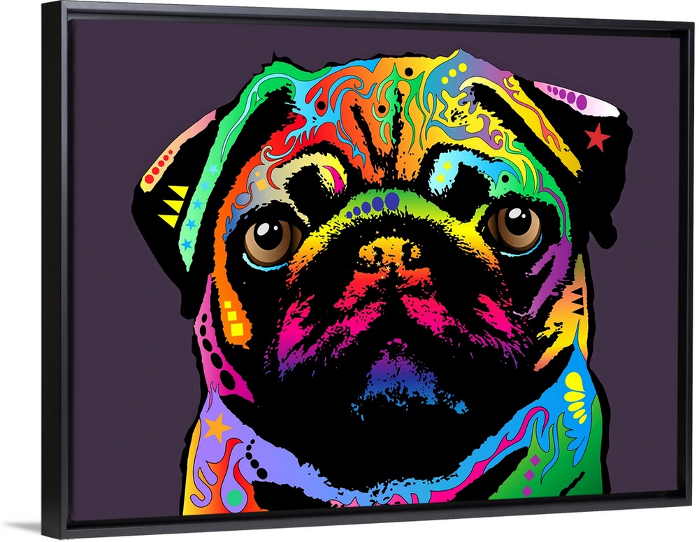 <p>Pug Art Print Canvas. The pug is a toy breed of dog with a wrinkly, short-muzzled face, and curled tail. The pug breed has a fine, glossy coat that comes in a variety of colors, and a compact square body with well-developed muscle. Pugs were originally bred to adorn the laps of the Chinese sovereigns during the Shang dynasty (before 400 BCE) in East China. The pug was imported to Europe in the 16th century by the Dutch East India Company. The pug is said to have become the official dog of the House of Orange in 1572 after a pug named Pompey saved the life of the Prince of Orange by alerting him to the approach of assassins.</p>