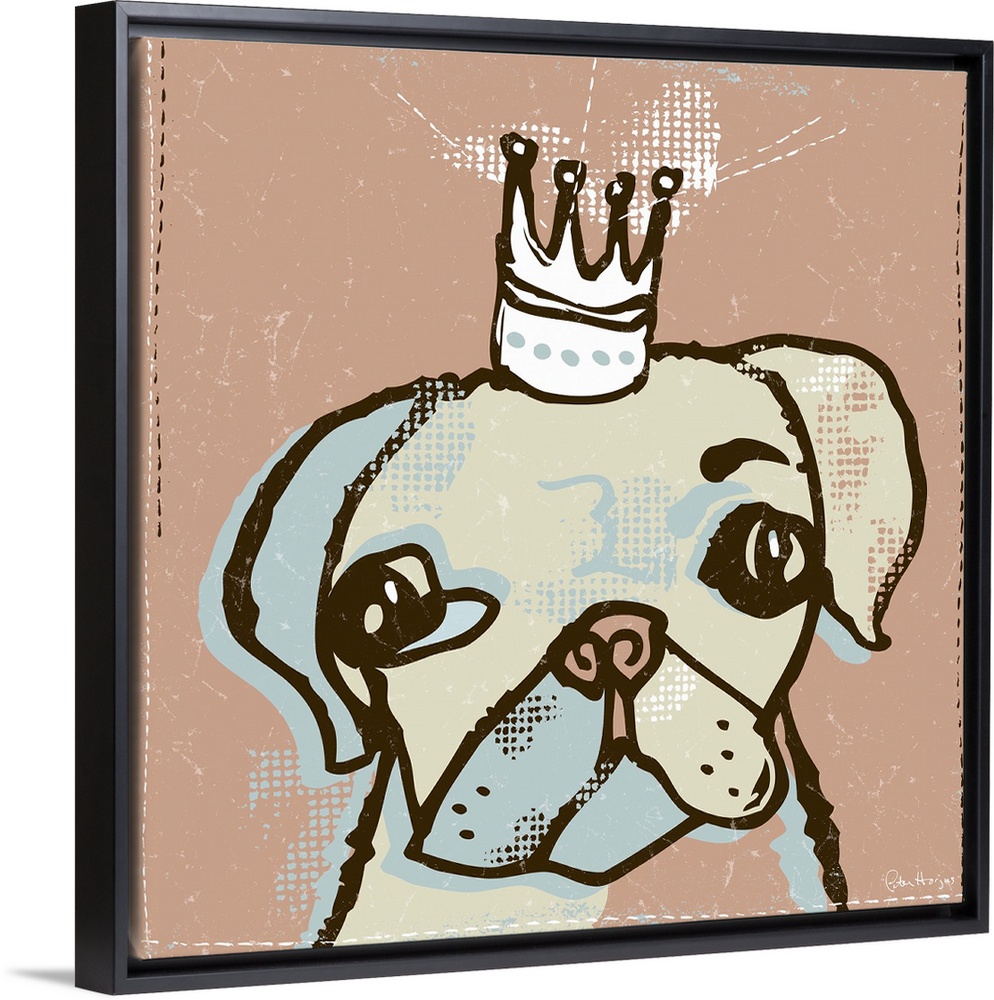 <p>A domesticated pug dog or boston terrier with a crown on his head called top dog.</p>