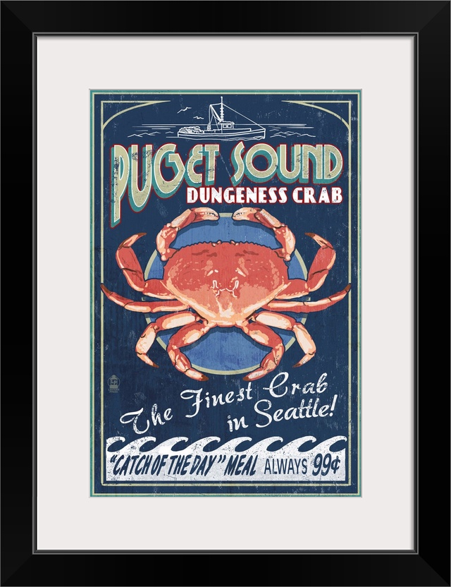 <p>Retro stylized art poster of a vintage seafood market sign displaying a king crab.</p>