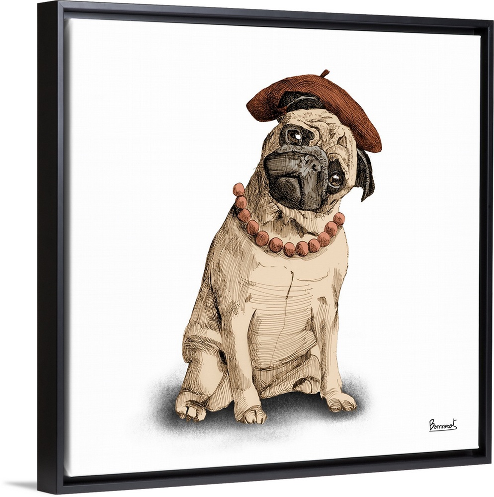 Art Brown Wall Art Beige Decorative Art Drawing Wildlife Dog Pug
