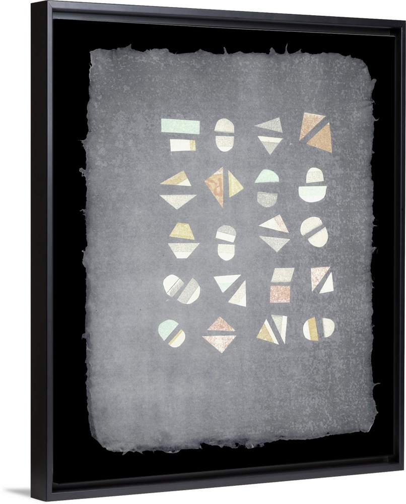 <p>Geometric shapes pair up in a careful composition, suspended in a sheet of handmade paper.</p>