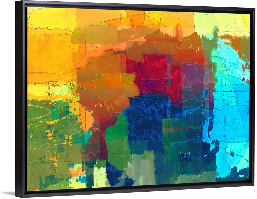 <p>Vibrant abstract art with translucent hues layered on top of each other in different free formed shapes.</p>