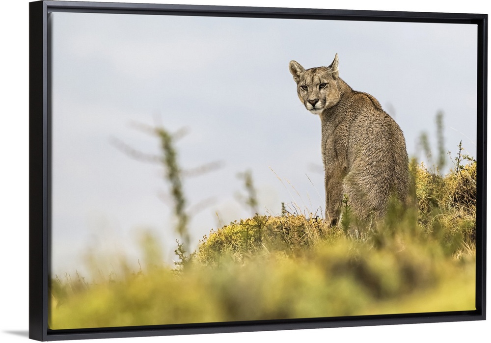 <p>Puma sitting and looking back at the camera, Southern Chile; Chile</p>