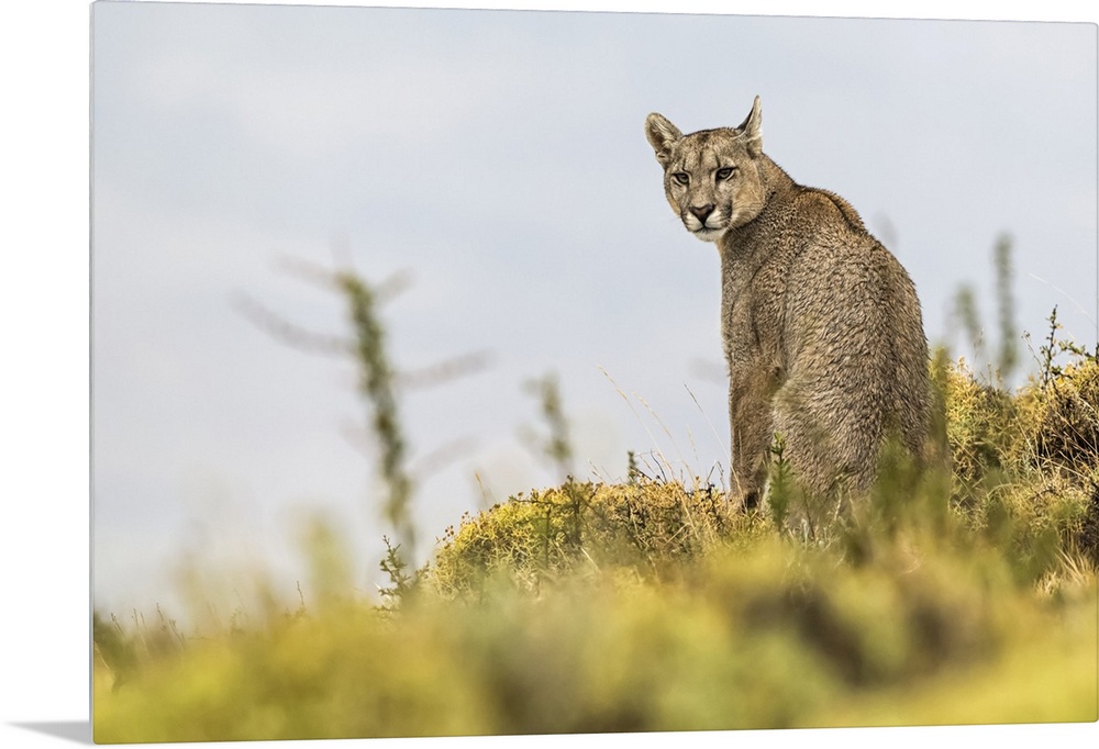 <p>Puma sitting and looking back at the camera, Southern Chile; Chile</p>