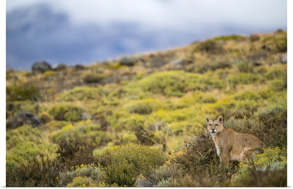 <p>Puma walking through the landscape in Southern Chile; Chile</p>