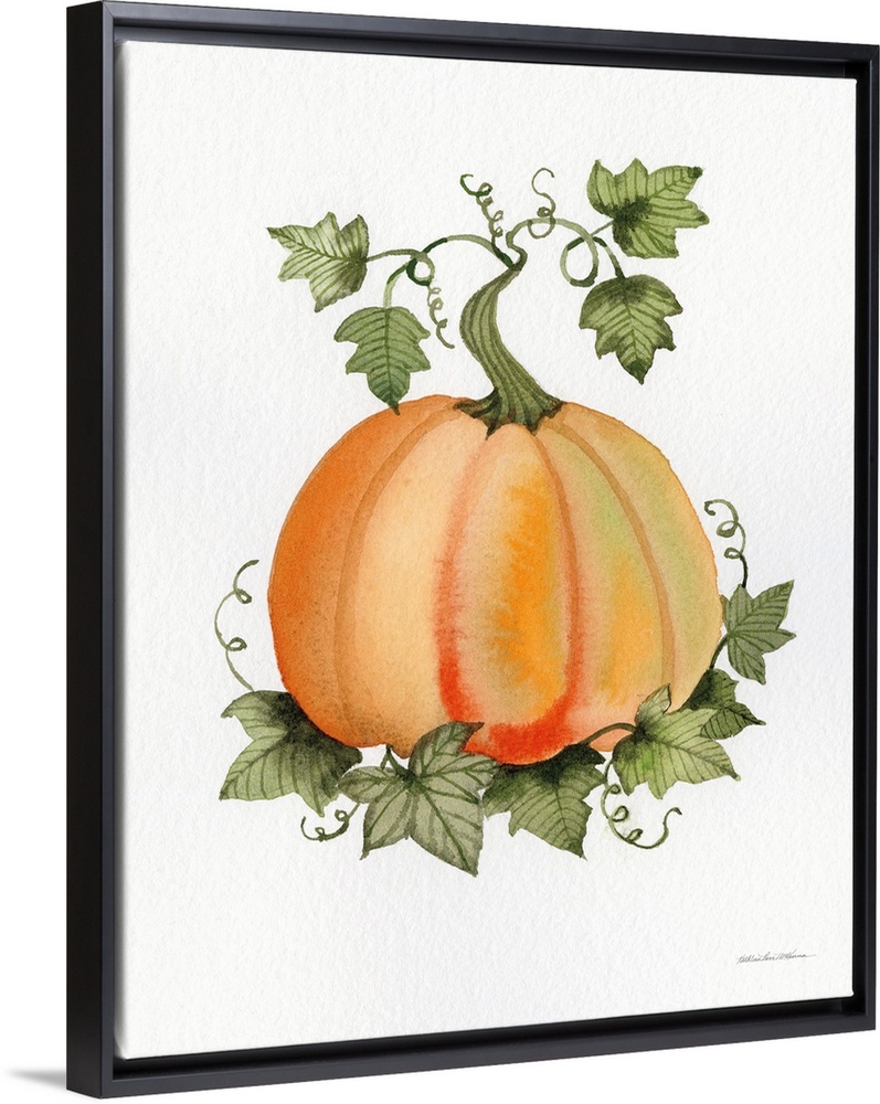 <p>Decorative artwork of an orange pumpkin and vines on a white background.</p>