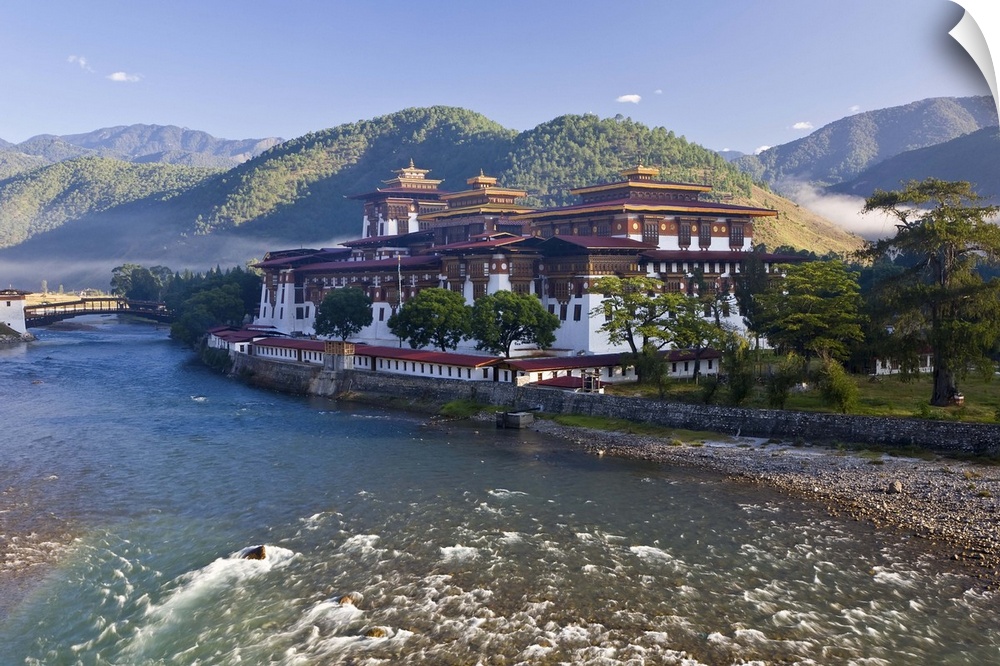 <p>Punakha Dzong at the convergence of two rivers Mo Chhu and Pho Chhu, Punakha, Bhutan</p>