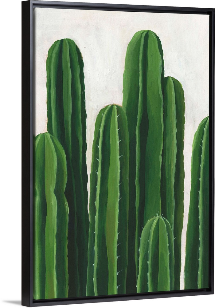 <p>Artwork featuring luscious cacti against a mottled background with gray and off-white brush strokes.</p>