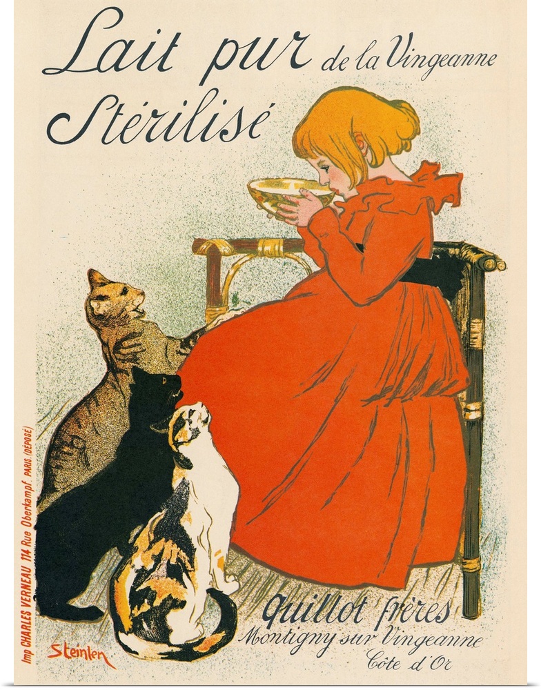<p>Poster for 'Lait pur de la vingeanne sterilise.' Lithograph by Th?ophile-Alexandre Steinlen, c1899.</p>