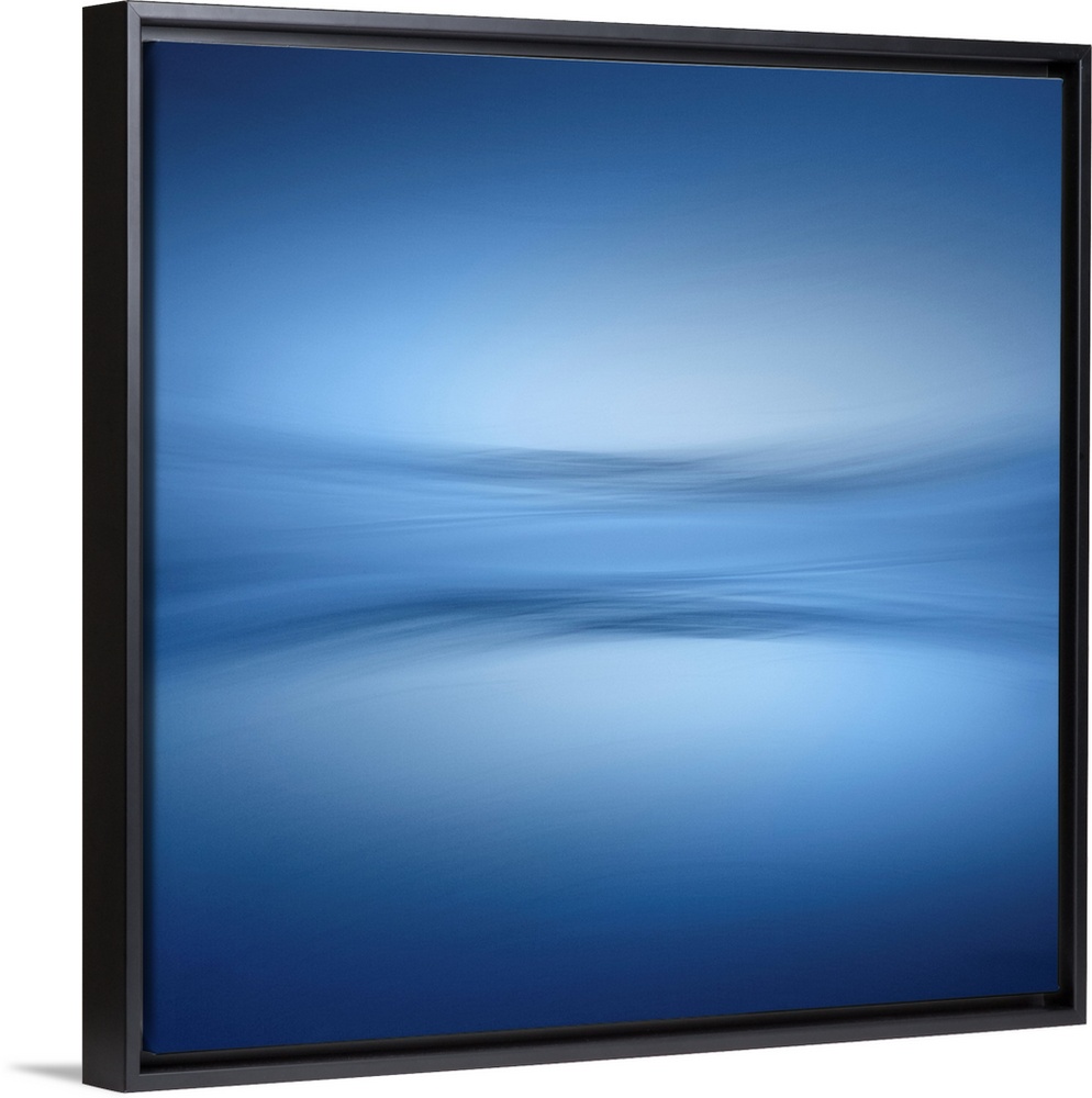 <p>Abstract photograph of a faint horizon line separating a peaceful blue lake and a clear sky.</p>