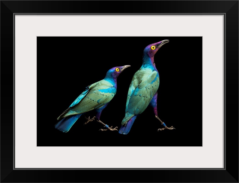 <p>Purple glossy starlings, Lamprotornis purpureus, at the Kansas City Zoo.</p>