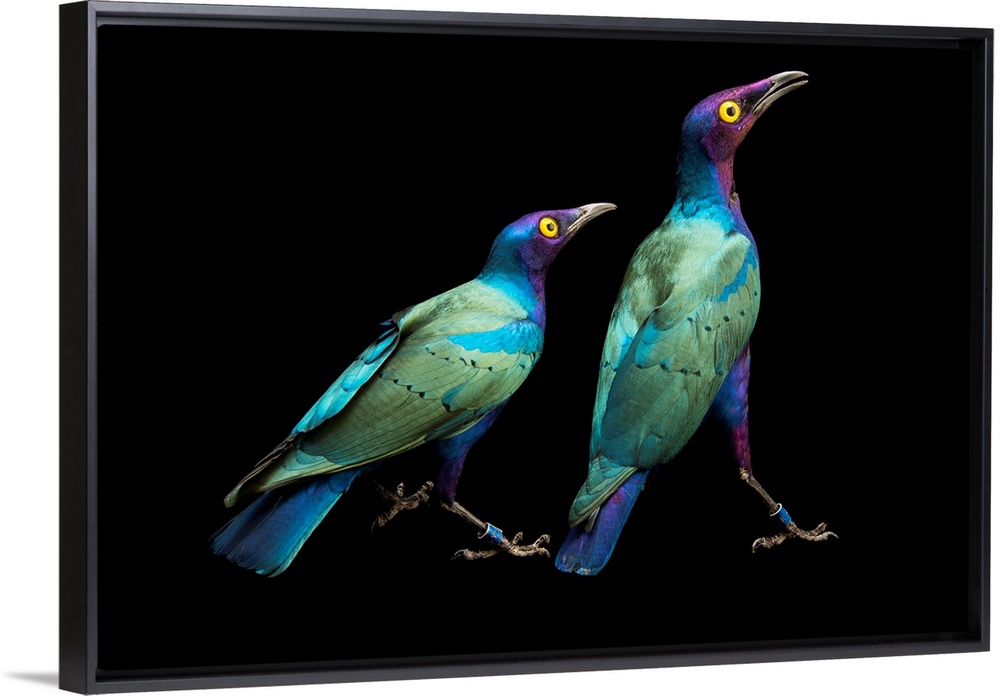 <p>Purple glossy starlings, Lamprotornis purpureus, at the Kansas City Zoo.</p>