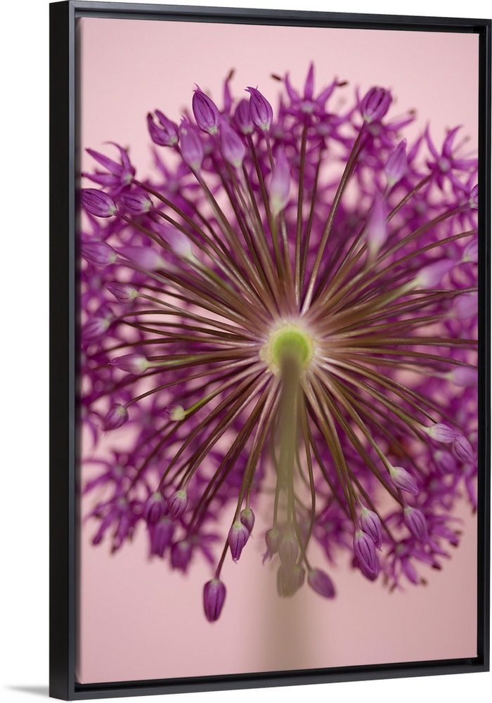 <p>A contemporary soft focus of a magenta pink alium flower head against a soft pink background.</p>