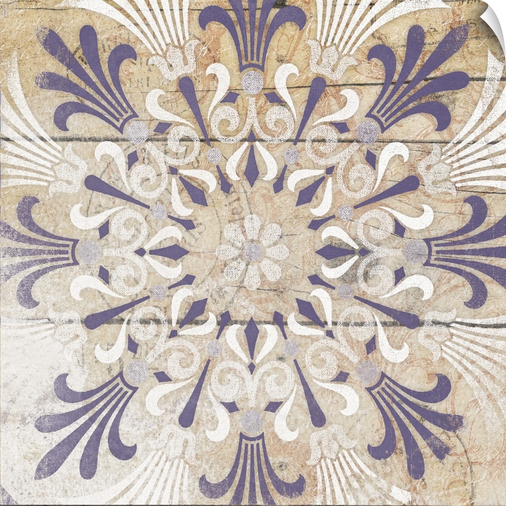 <p>Decorative lavender pattern against a rustic earth toned background.</p>