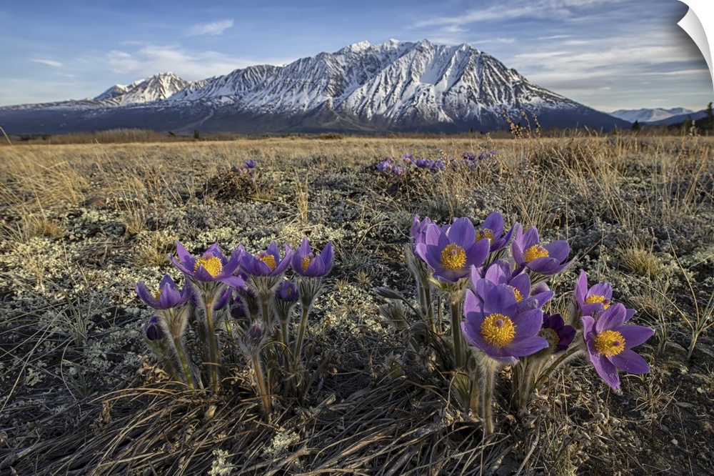 <p>Purple, Prairie Crocus Blooming On The Tundra, Kluane National Park, Yukon, Canada</p>