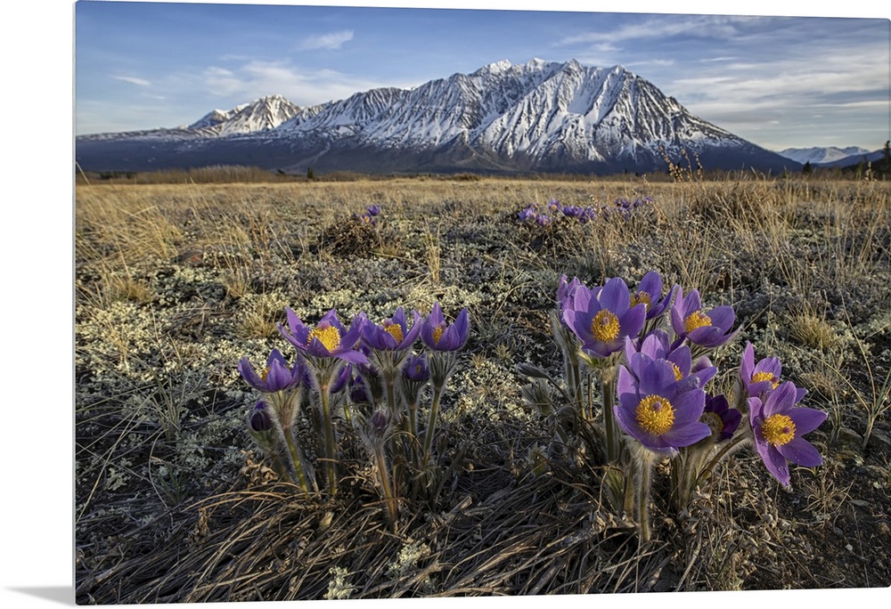 <p>Purple, Prairie Crocus Blooming On The Tundra, Kluane National Park, Yukon, Canada</p>