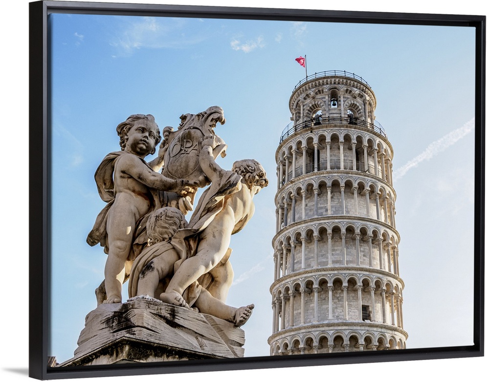 <p>Putti Fountain and Leaning Tower, Piazza dei Miracoli, Pisa, Tuscany, Italy.</p>