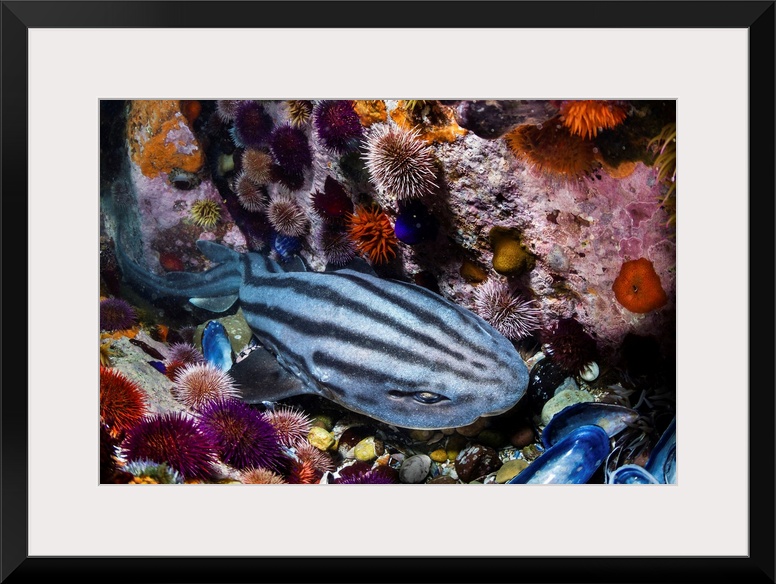 <p>Pyjama shark resting in a little canyon between sea urchins, South Africa.</p>