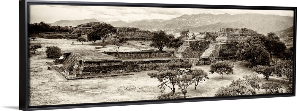 <p>Sepia panoramic photograph of the pyramid of Monte Alban in Oaxaca, Mexico. From the Viva Mexico Panoramic Collection.</p>