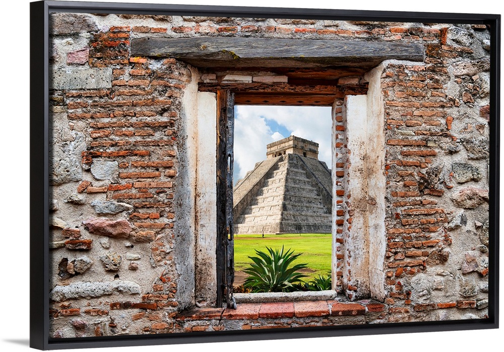 <p>View of the Mayan Ruins framed through a stony, brick window. From the Viva Mexico Window View.</p>