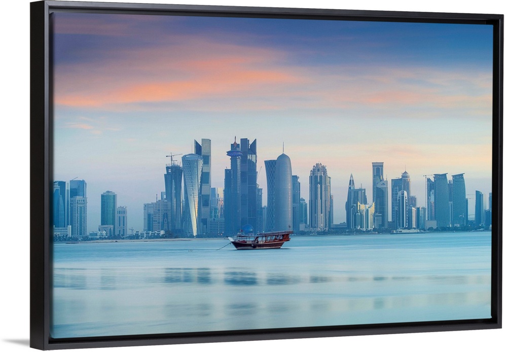 <p>Qatar, Doha, looking across Doha Bay to skyscrapers of West Bay</p>