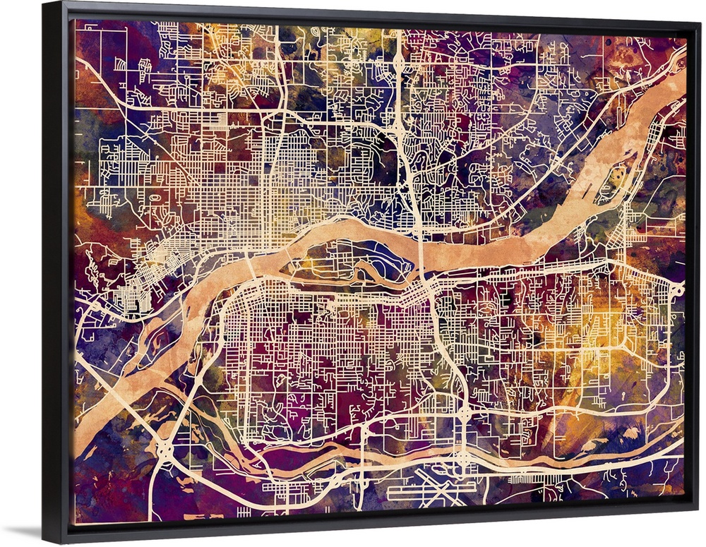 <p>Watercolor street map of Quad Cities, Illinois and Iowa, United States.</p>